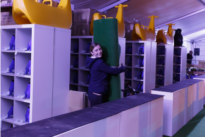 De schaatsverhuur is de ontvangstruimte om je schaatsers te verwelkomen. Om die aantrekkelijk in te richten kan je bij ons terecht voor schaatskasten in diverse afmetingen, togen, bankjes, tafels, grastapijt, rubberen matten,... kortom alles om een vlotte doorstroming te garanderen. En om het ook veilig te houden nu in tijden van Corona hebben we eveneens plexi schermen in verschillende opstellingen.
